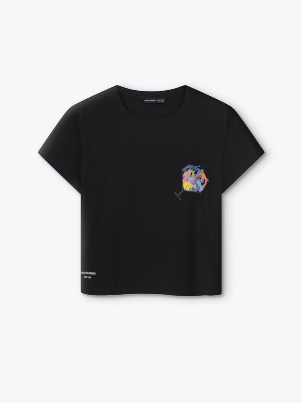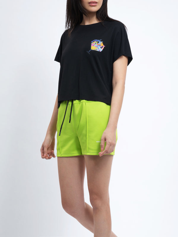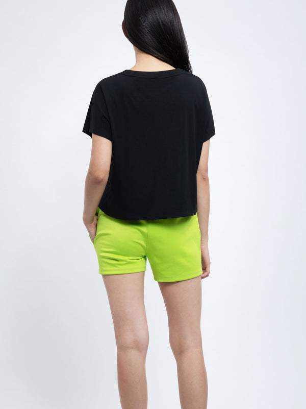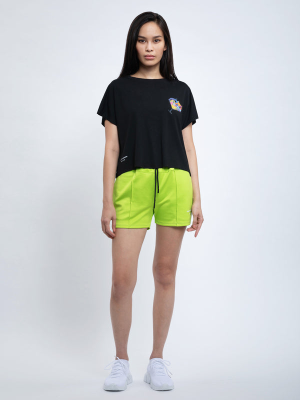 - Loose fit with a relaxed cut sleeve and crop silhouette.