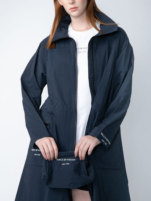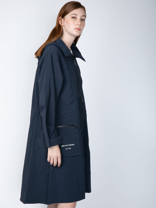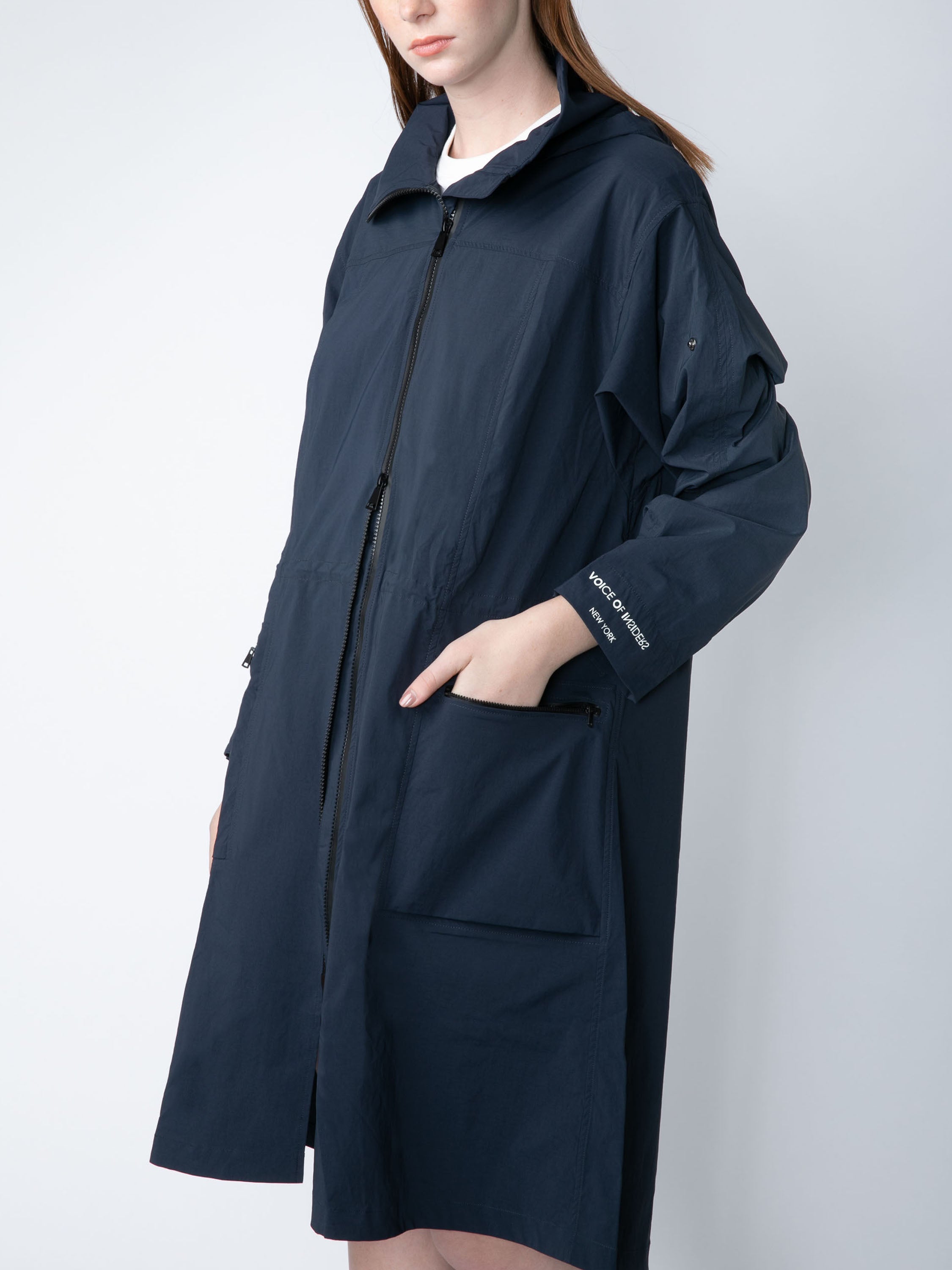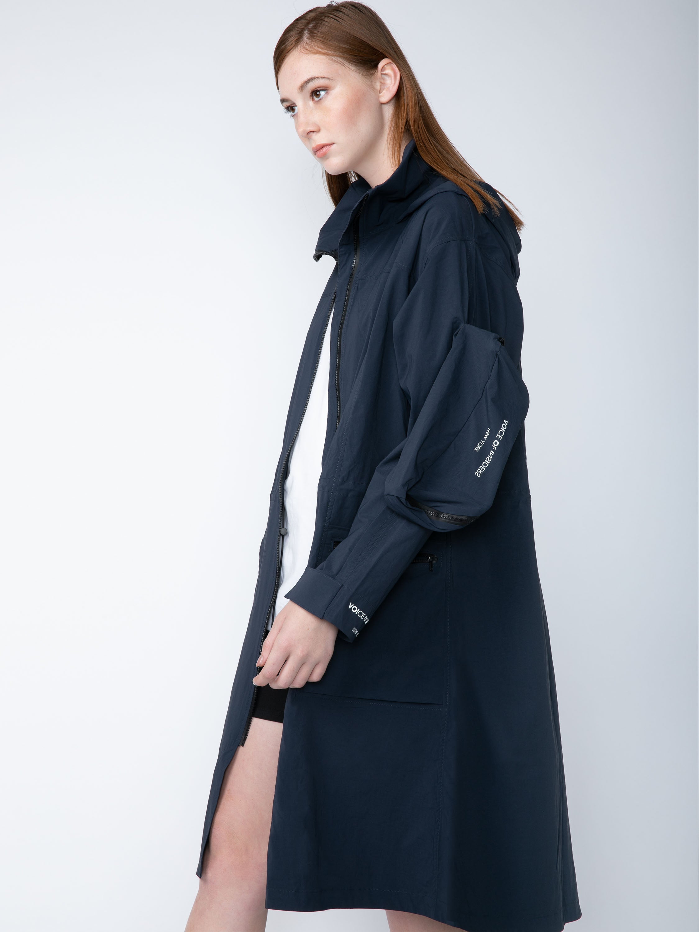 - Two-way open water-proof zipper at front closure. Two patch pockets at front with water-proof zippers opening.