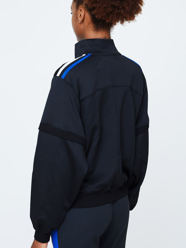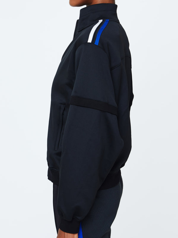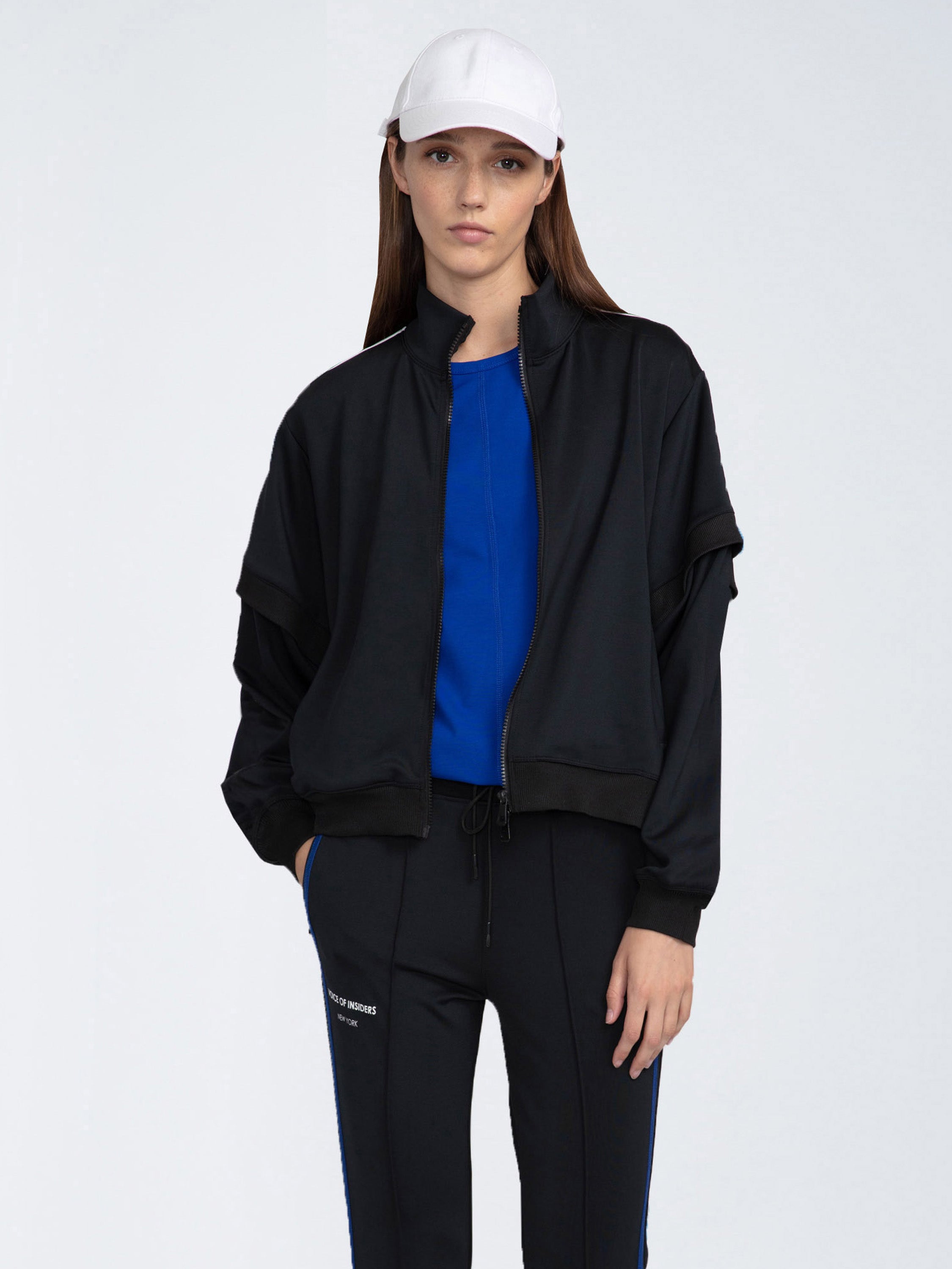 - Contrasted double stripes at the shoulder offering a sporty aesthetic.