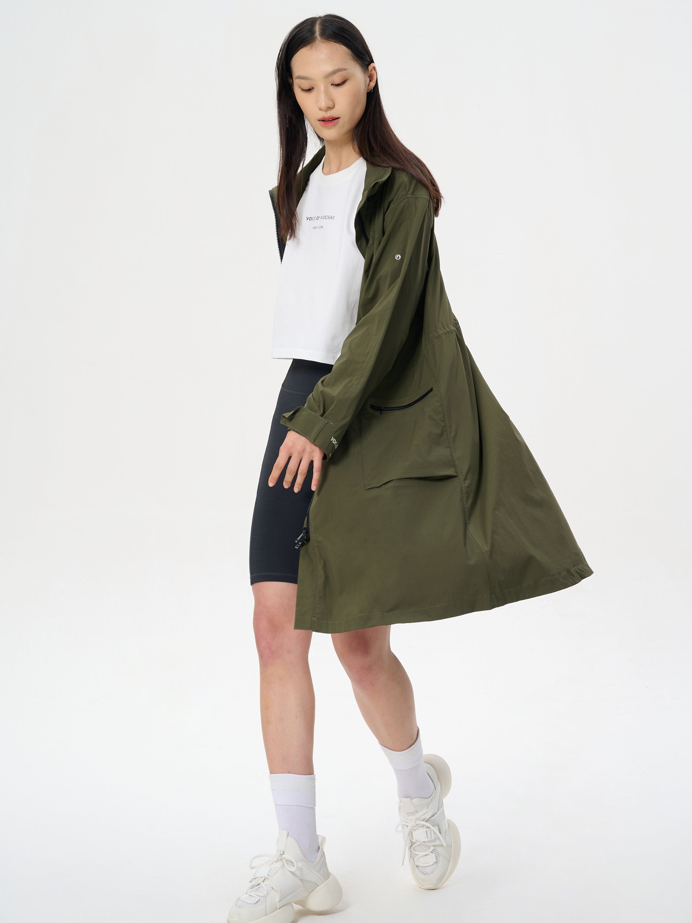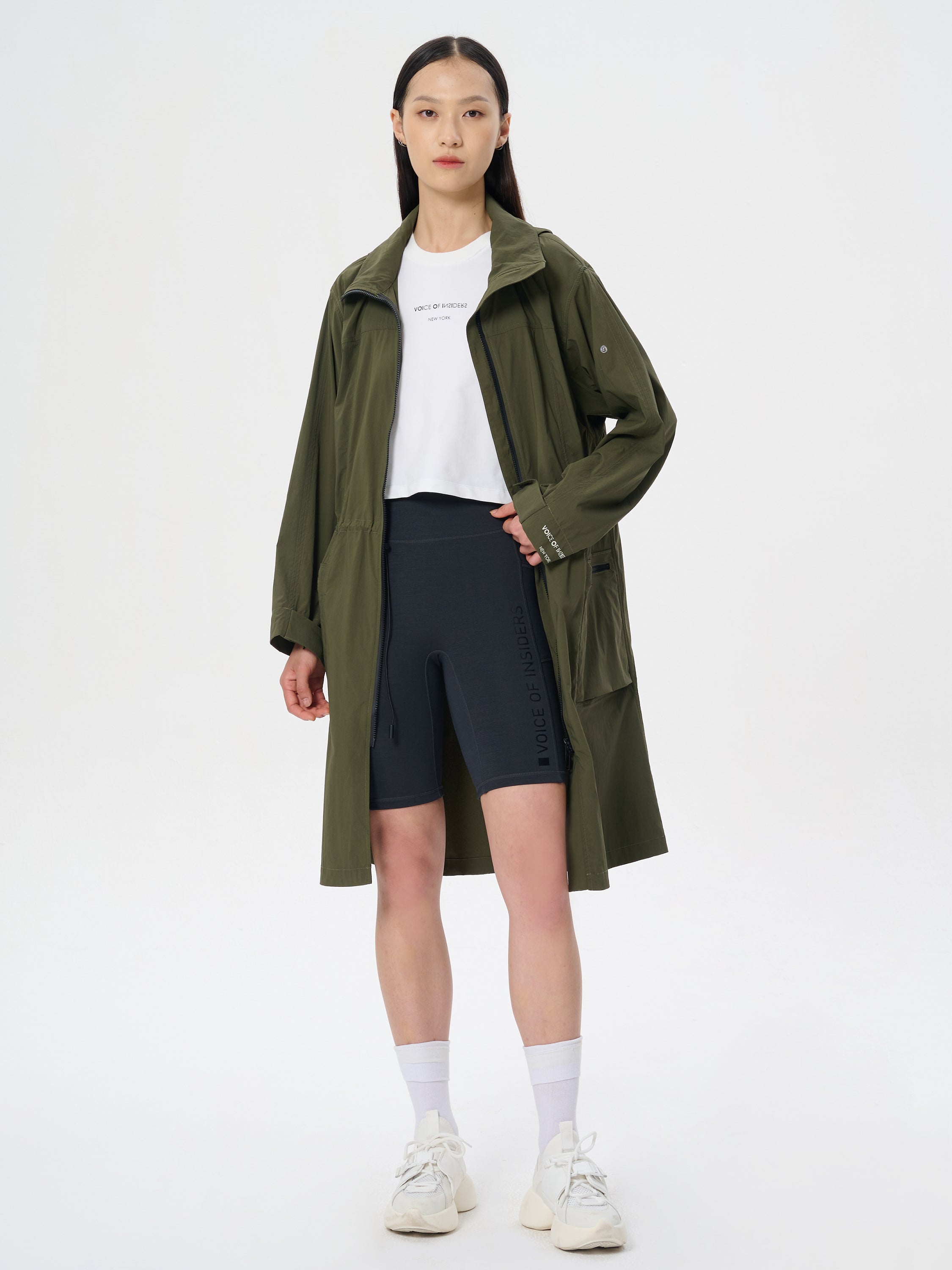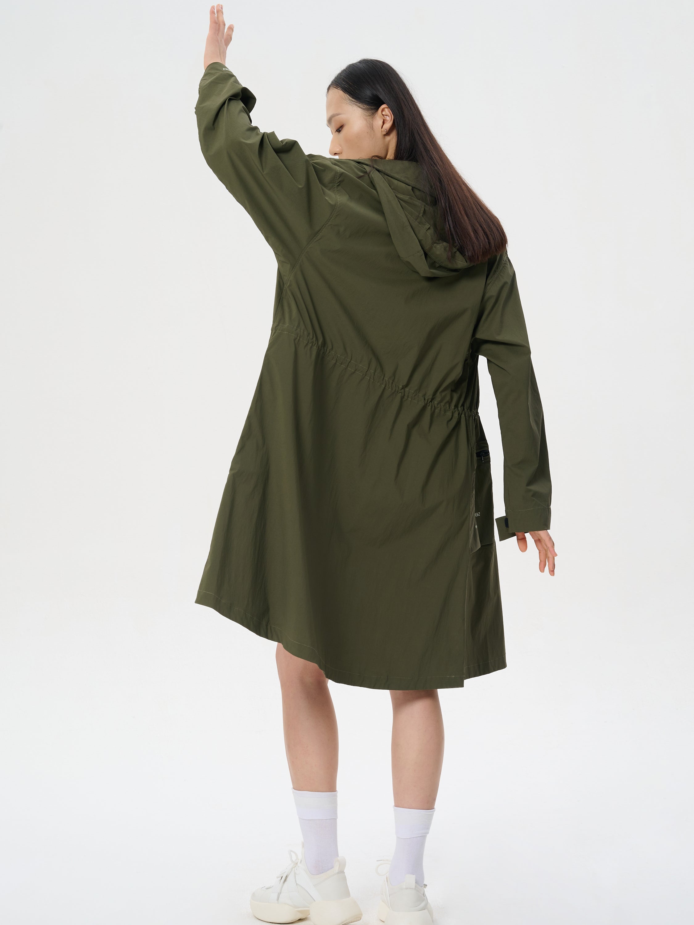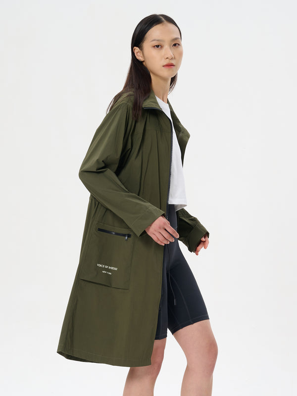 - Two-way open water-proof zipper at front closure. Two patch pockets at front with water-proof zippers opening.