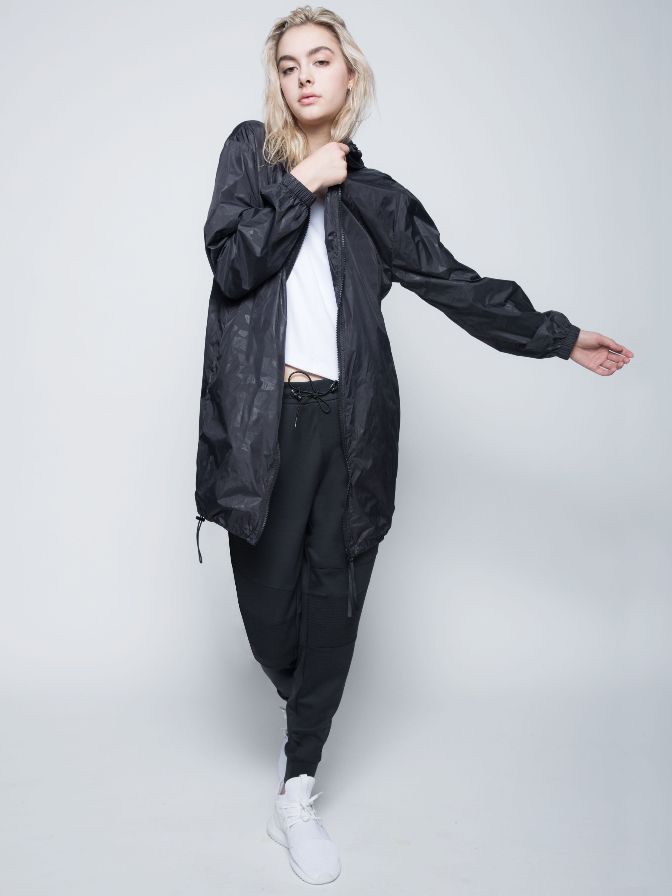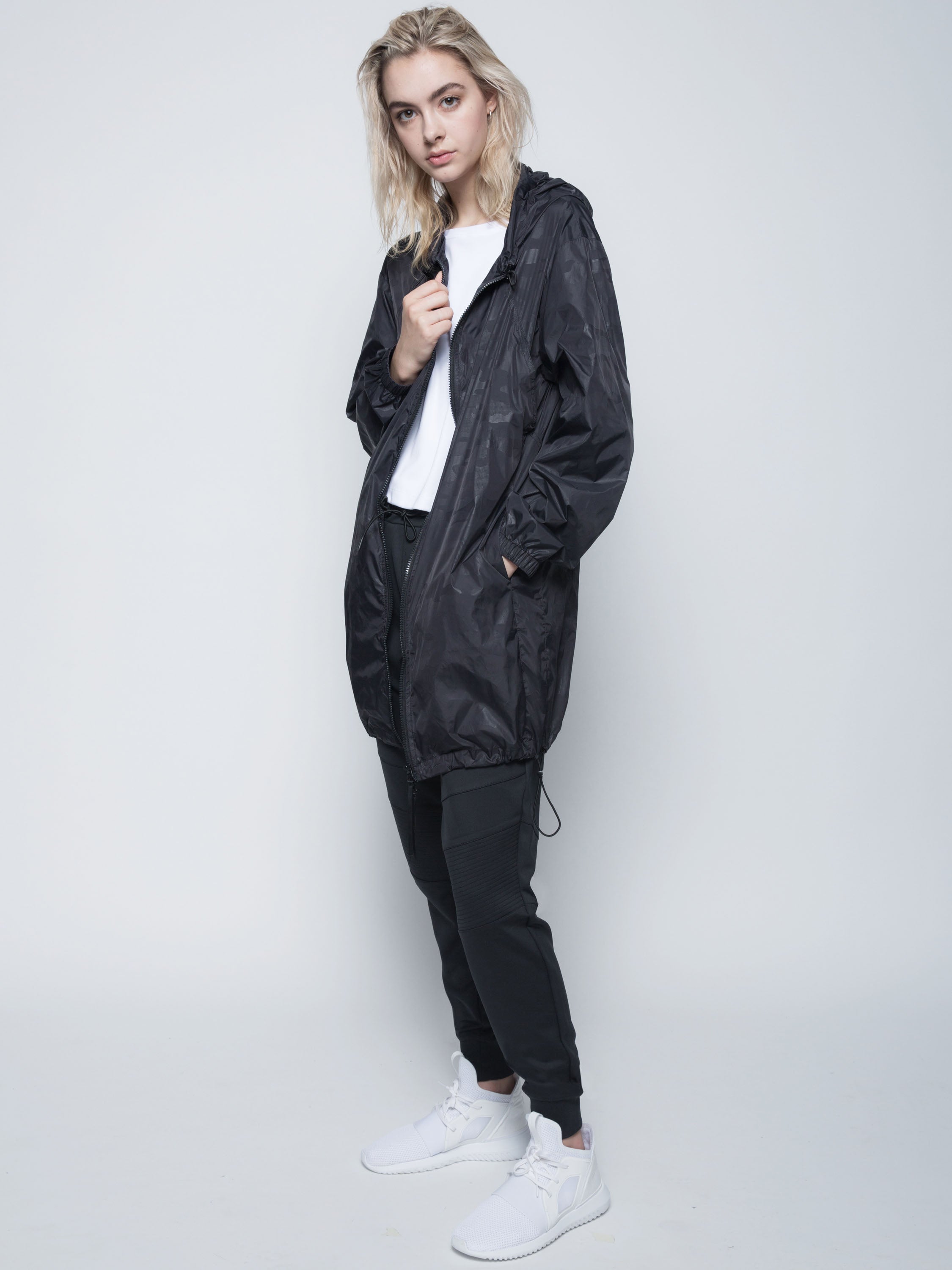 - Adjustable bungee at hood and bottom hem.