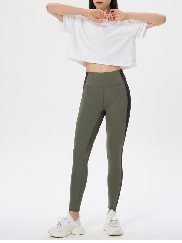 - Designed in yarn dye high-spandex compression interlock featuring a heather look with great stretch and recovery.