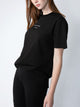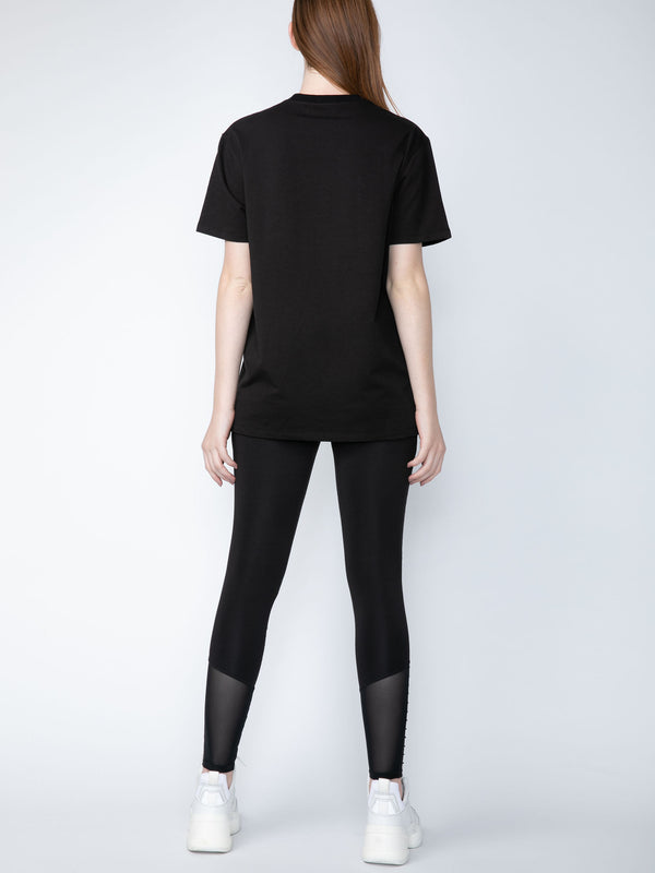 - Overlock stitches running down the front of the shirt for subtle detailing.