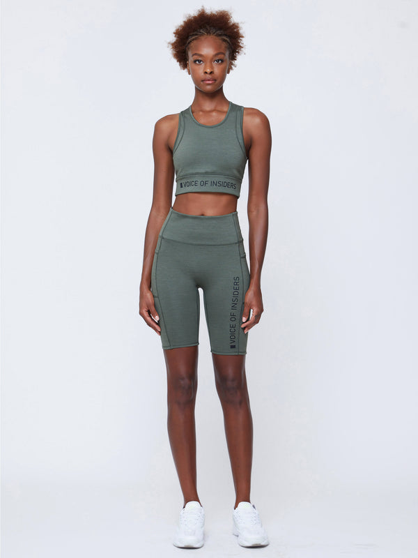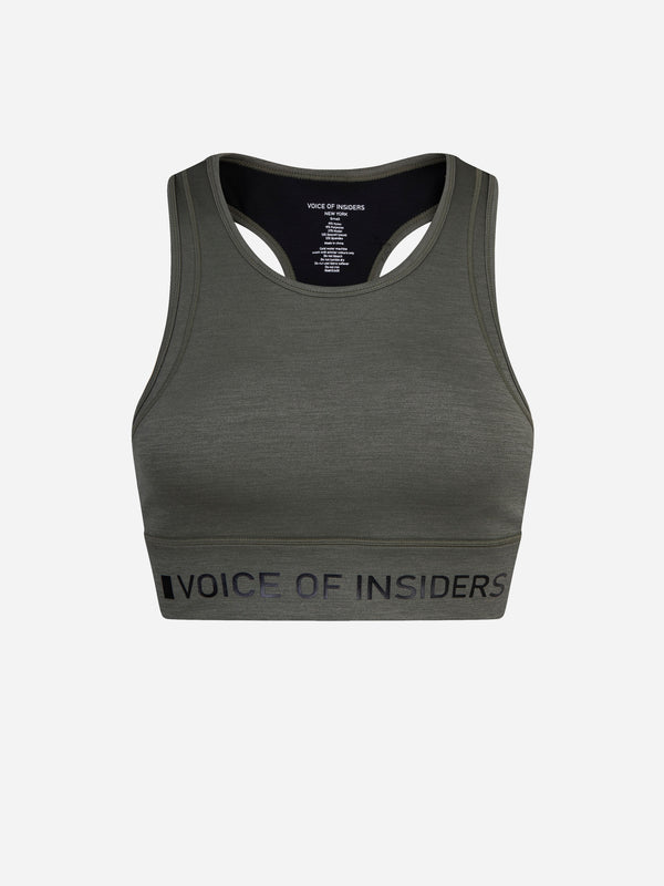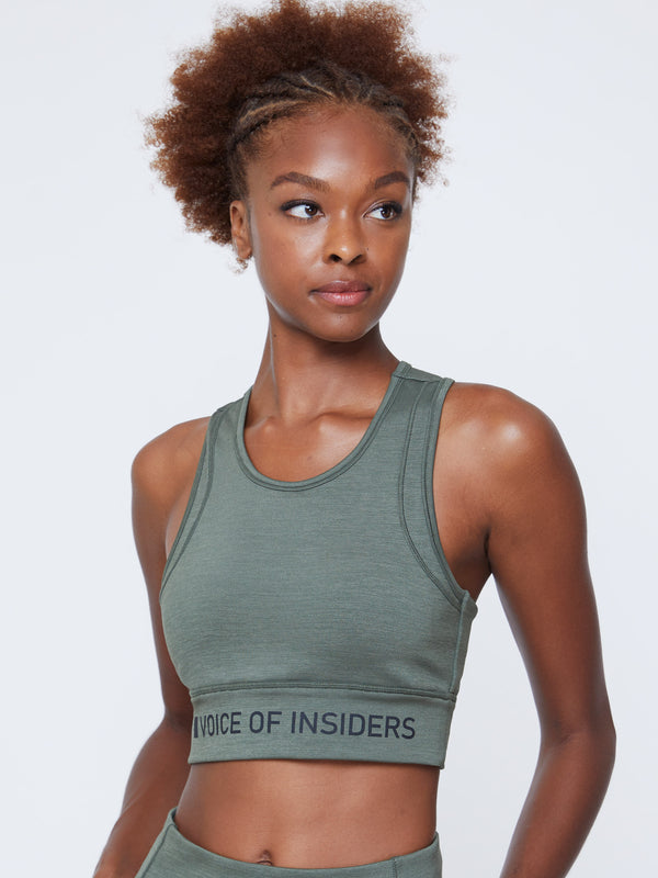 VOI + SeaCell™ “T” Sports Bra | Green Heather