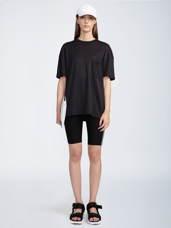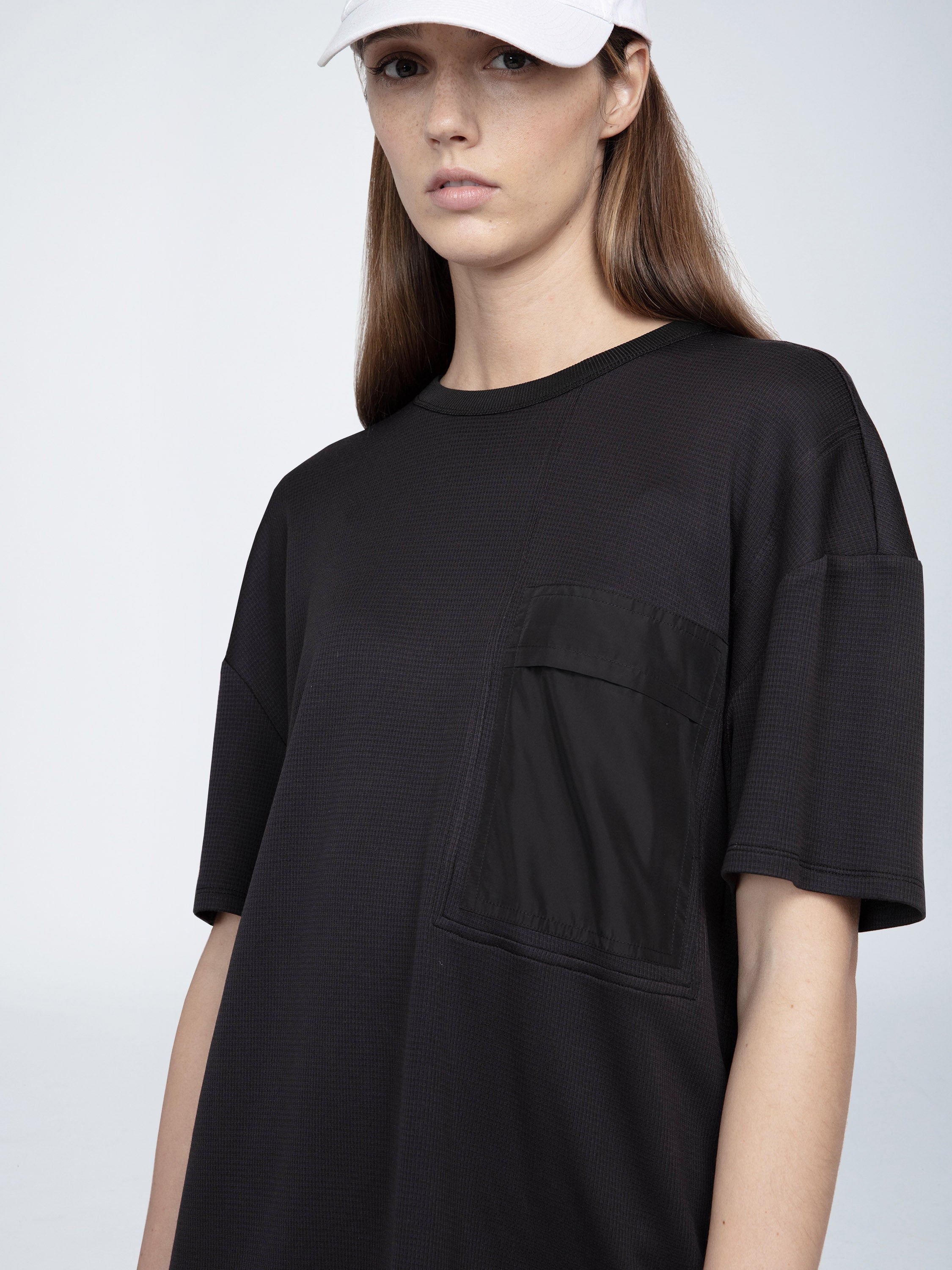 - The lightweight fabric runs from the seam of the shoulder to outline the pocket for subtle detail.